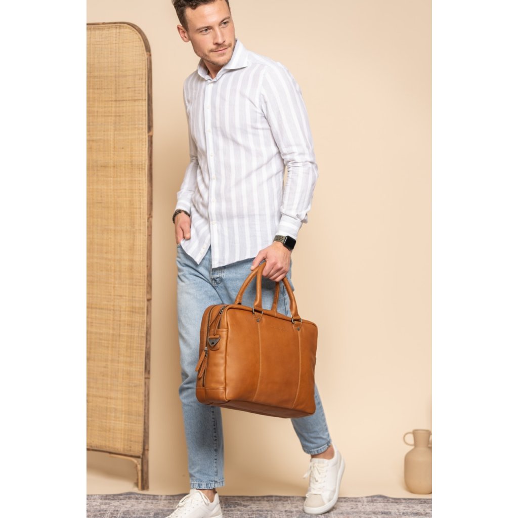 Kožená taška z prémiové voskované kůže v odstínu cognac na notebook 15,6" nabízí prostorné vnitřní členění a spolehlivou ochranu techniky. Užijte si elegantní styl a komfort při práci i každodenním cestování.