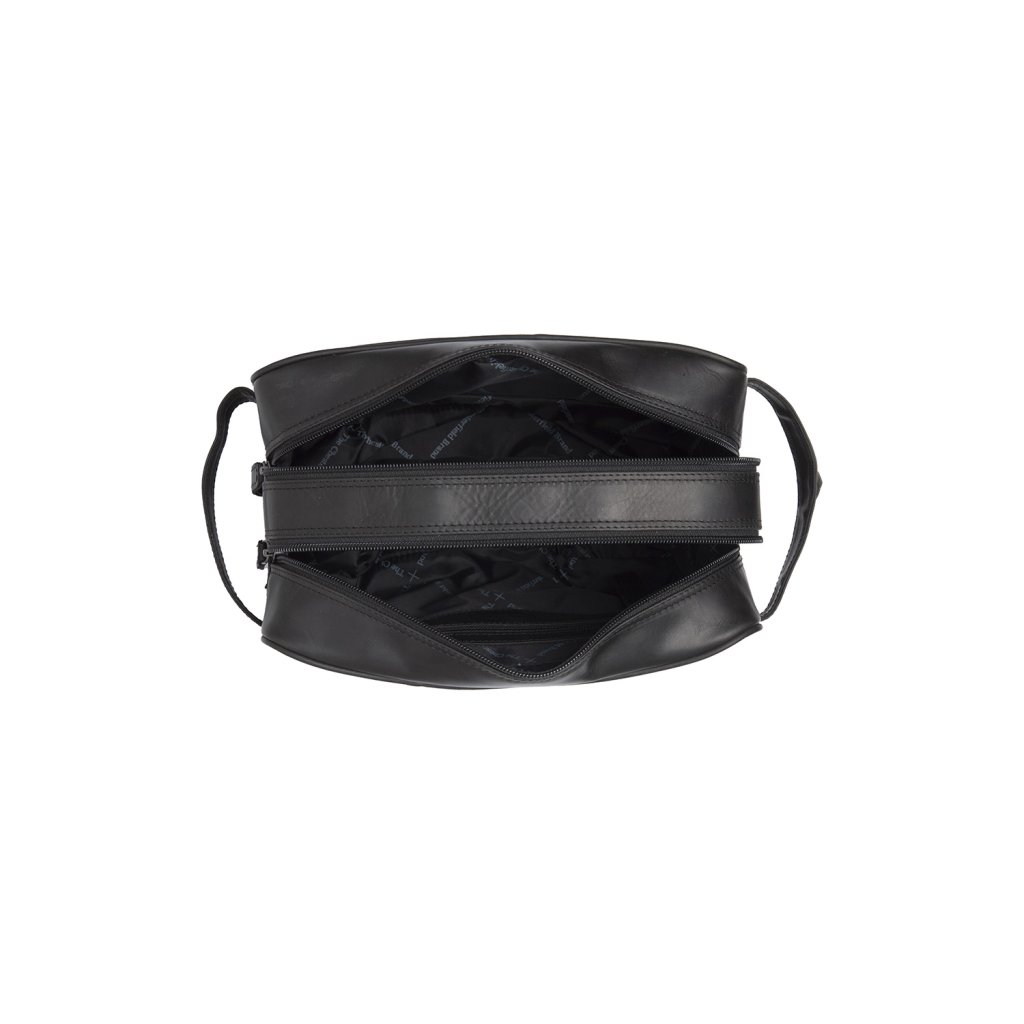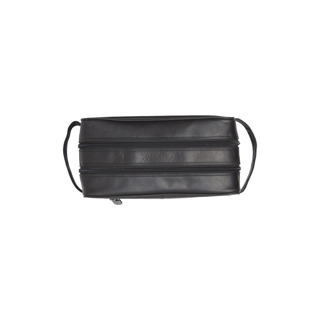 Kožená toaletní taška z voskované kůže v černé barvě nabízí přehledný vnitřní prostor, praktické kapsy na hygienické potřeby a pevné poutko pro snadné přenášení. Stylový doplněk vhodný pro cestování i každodenní používání.