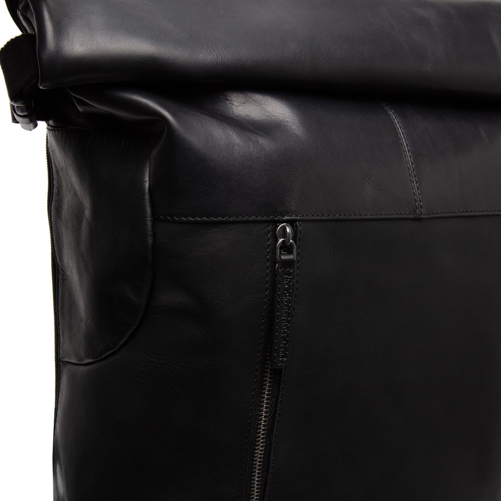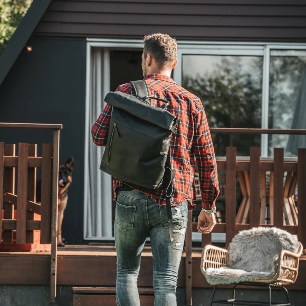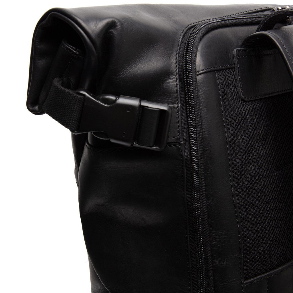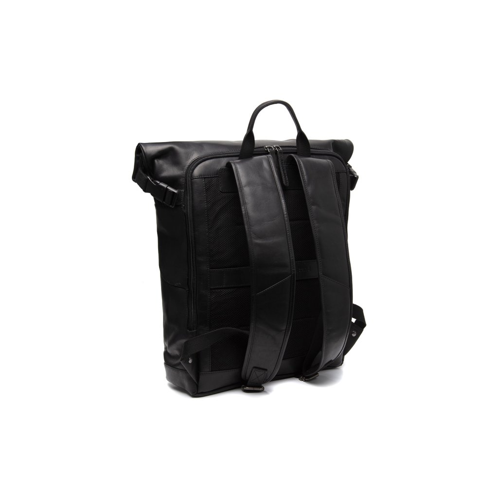 Kožený rolovací batoh z voskované kůže v černé barvě na notebook nabízí polstrovanou přihrádku, prostorný hlavní oddíl a přední kapsu pro rychlý přístup. Stylový a praktický doplněk vhodný pro práci, cestování i každodenní pohyb po městě.