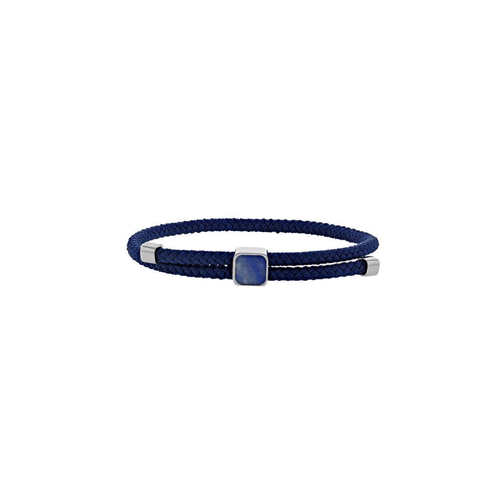 Pánský náramek se sodalitovým korálkem na námořnicky modrém bavlněném kordu s nastavitelným provedením.